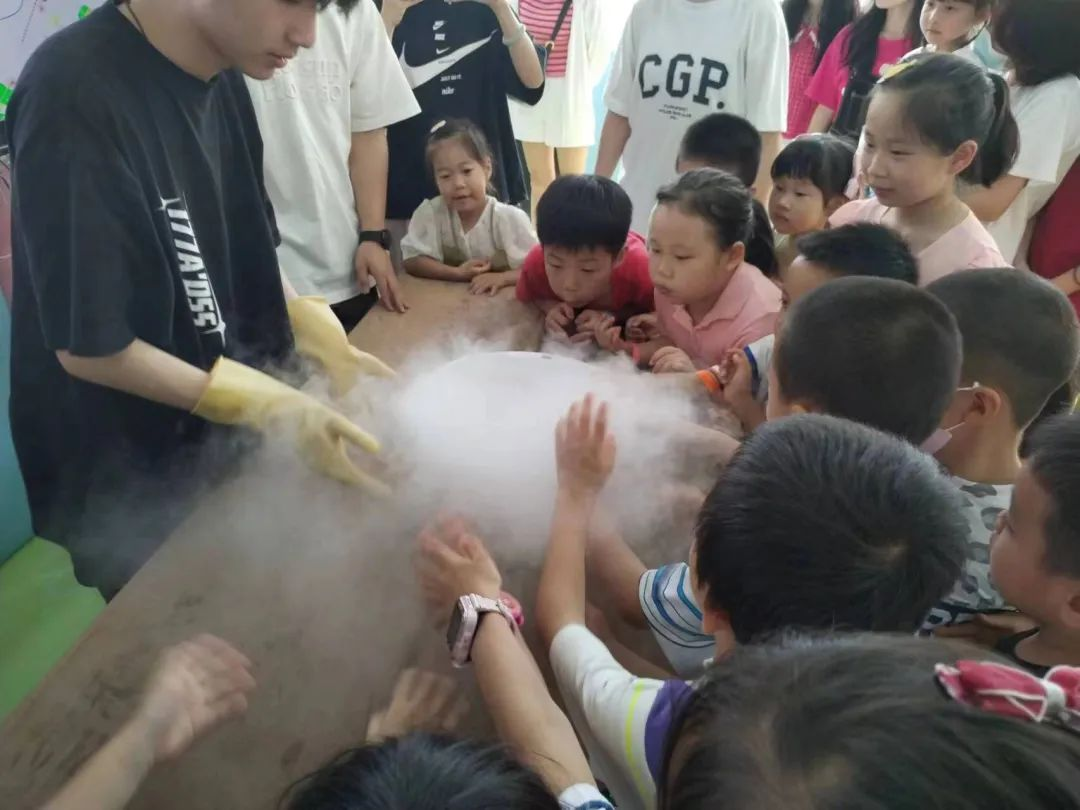 实验过后还有问答环节,小朋友们踊跃地举手回答,积极回答的小朋友们都获得了精美的小礼品。本次活动圆满结束,活动最后带领小朋友们进行集体合照,记录这愉快的一天!