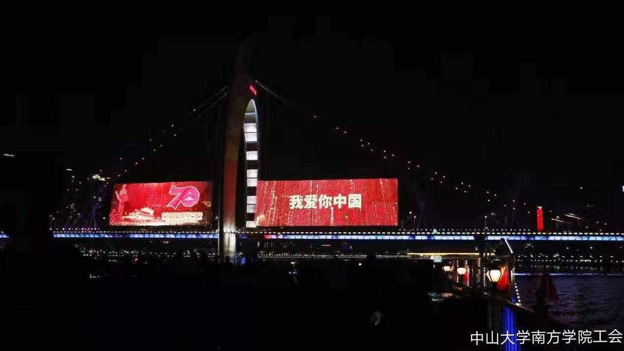特别游经猎德大桥时,桥上展示的”我爱你中国”激光字幕,更是让所有观光者为之赞叹,心中的爱国之情油然而生,感叹着繁荣美丽的广州,感叹着祖国的强大与美好!